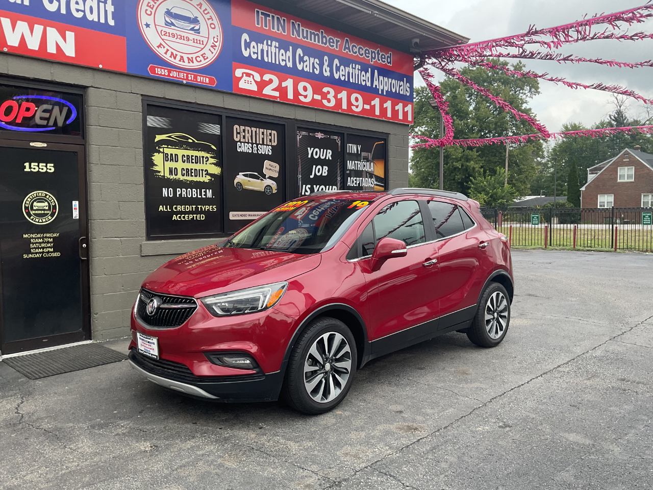 Cruise the streets in style with this fiery 2019 Buick Encore in a stunning shade of red that will turn heads wherever you go. This sleek and compact SUV is perfect for zipping around town or hitting the open road for a weekend adventure. With low mileage and a clean Carfax report available for your peace of mind, you can rest easy knowing you're getting a reliable and well-maintained vehicle.Whether you're a tech-savvy driver who loves staying connected on the go or someone who prioritizes safety and comfort, this Buick Encore has you covered. From its intuitive infotainment system to its advanced safety features, this car has everything you need for a smooth and enjoyable ride. So why wait? Come take this beauty for a test drive today and experience the thrill of driving a quality pre-owned vehicle that's as reliable as it is stylish. Life's too short for boring cars - upgrade to this vibrant Buick Encore and let the fun begin!