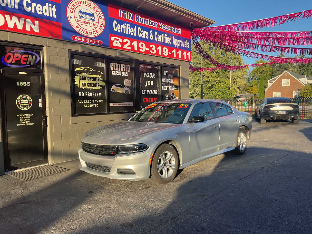 Buckle up and hit the streets in this sleek and stylish SILVER 2023 Dodge Charger, the ultimate combination of power and performance! This beauty comes fully loaded with a Carfax report readily available for your peace of mind. Take a step inside and feel the comfortable leather seats hug you as you rev up the powerful engine for an exhilarating drive.The seamless navigation system will guide you to your destination effortlessly, while the premium sound system will turn every journey into a concert on wheels. With the spacious interior, you can comfortably accommodate friends and family for those unforgettable road trips.